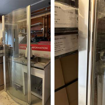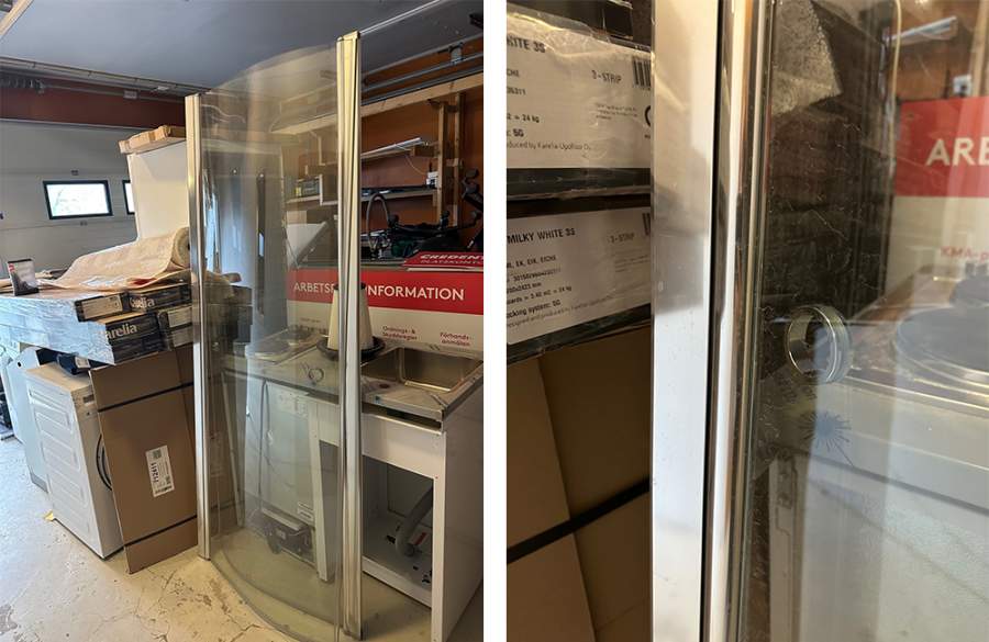 Duschväggar 90x90, halvrunda i klarglas och alu-blankprofiler. Betalning sker via faktura från Credentia. Upphämtning sker på HK efter överenskommelse med Martina Wingerud. Auktionen avslutas 16/12 kl 07:00